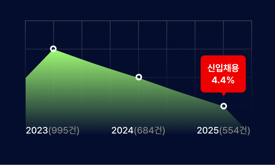 • 신입 채용은 줄고 있습니다.